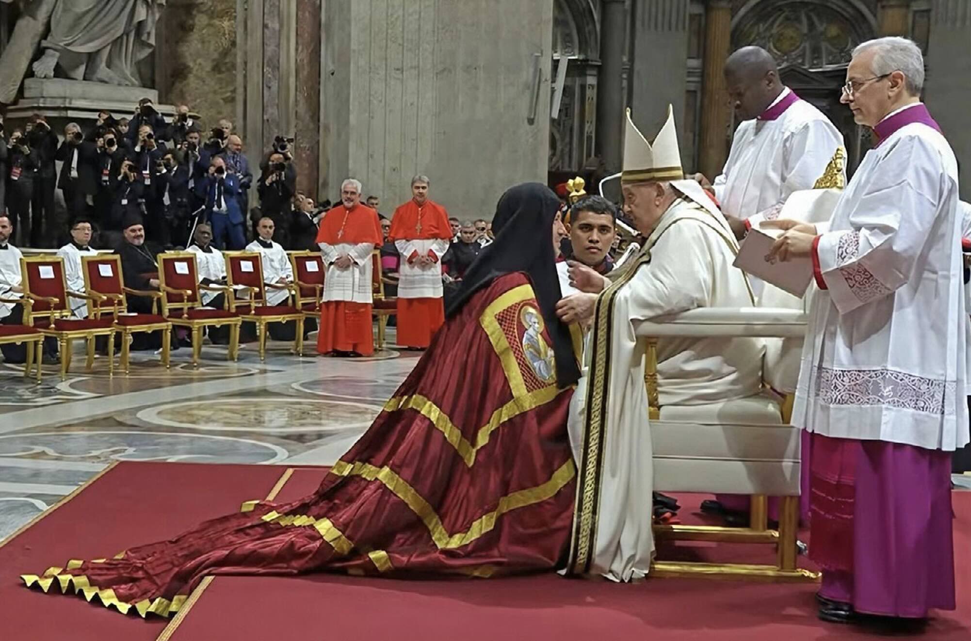 The ceremony took place in St. Peter’s Basilica and began with a short prayer and a reading from the Gospel of Mark. In this passage, James and John, the sons of Zebedee, ask Jesus to allow them to sit at His right and left in His glory. Then Jesus called them and said to them, “You know that those who are supposed to rule over the Gentiles lord it over them, and their great men exercise authority over them. But it shall not be so among you; but whoever would be great among you must be your servant, and whoever would be first among you must be slave of all. For the Son of man also came not to be served but to serve, and to give his life as a ransom for many.” (Mark 10:42–45).