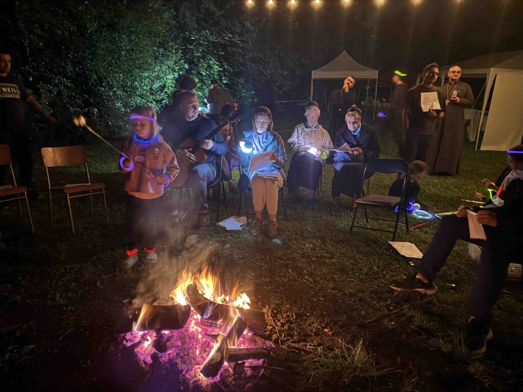 The beautiful evening of prayer, which has begun with the Festal Vespers and Lytia dedicated to Sts. Peter and Paul, concluded by a torch-lit procession to the cemetery for a Panakhyda (memorial service) led by Grindrod Pastor Fr. Andriy Werbowy. This prayerful moment of remembrance and unity deeply touched all who attended. The evening ended with a joyful campfire gathering, complete with singing, storytelling, and spiritual reflections led by Fr. Andriy Chornenkyi and Fr. Yuriy Sakvuk. Children delighted in roasting marshmallows, while youth sang together around the fire, embodying the warmth and fellowship of the community.