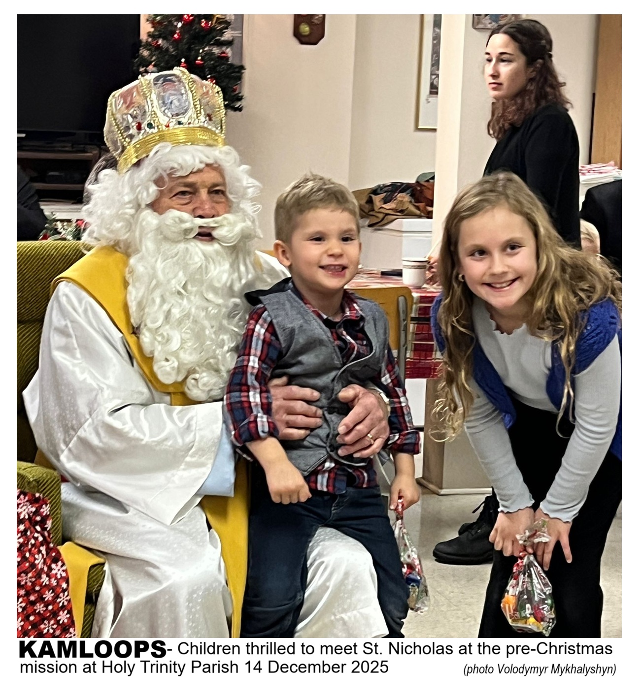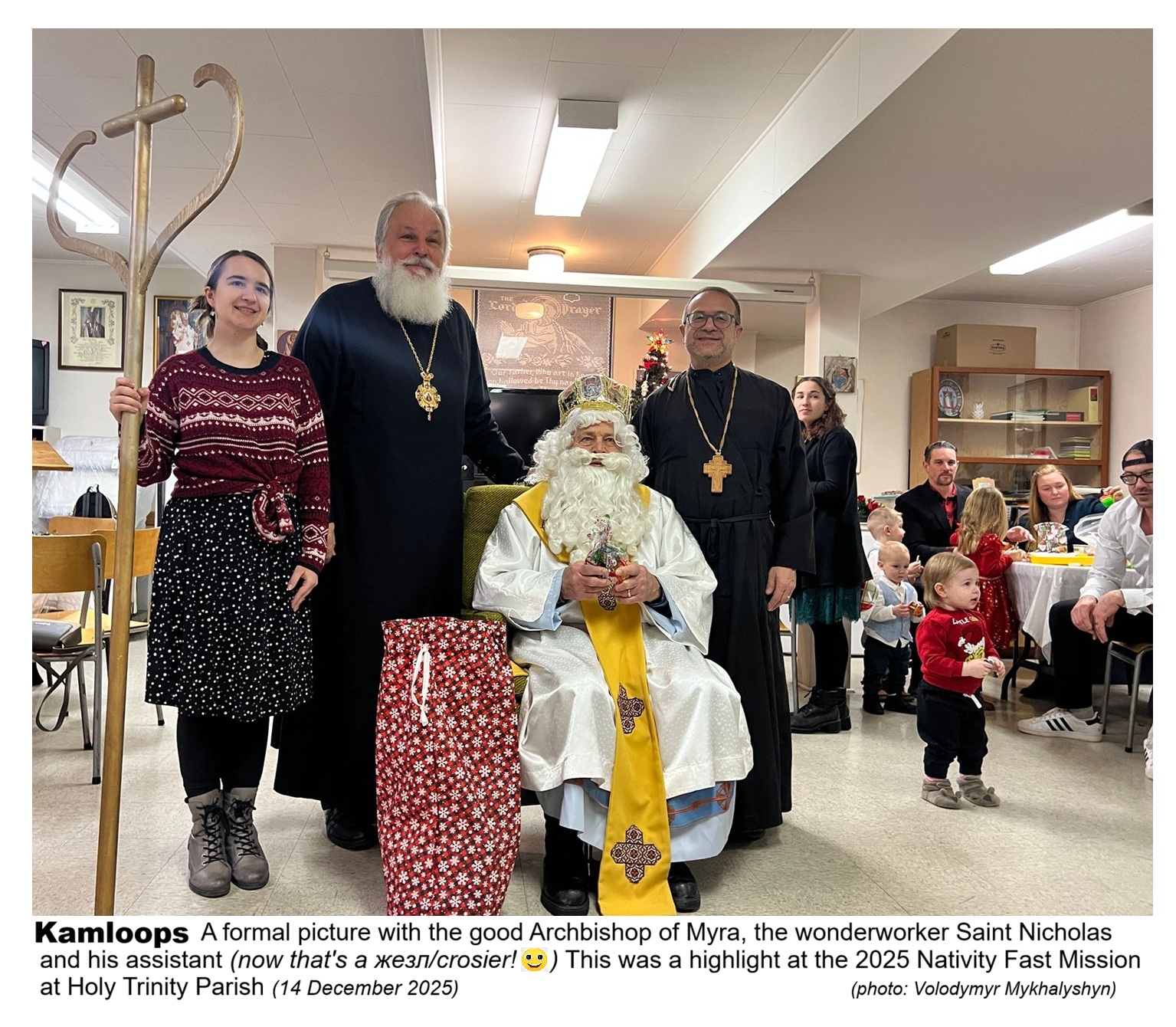 The parish in Kamloops even had an additional surprise! Good Saint Nicholas also visited the parish at the luncheon and offered gifts to the children (of all ages) that were gathered there.